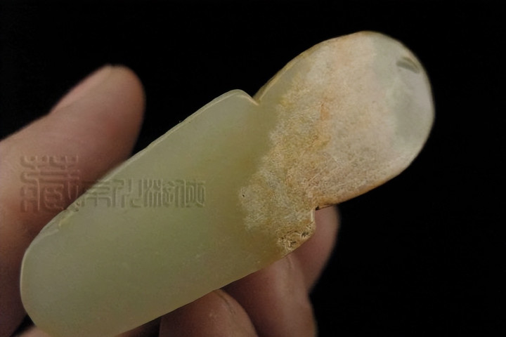 再赏其玉。可见本品玉质晶莹晶莹,纯洁无暇,风雅温润,白中略有泛青,乃优质和田青白玉材质无疑。其身包浆凝重,离别当然,突显透熟。局部可见光显受沁,其沁皮壳,彰显当然老谈,色正质实,一句话,其沁乃千年地宫埋藏当然酿成,天成耄耋极为信得过矣。